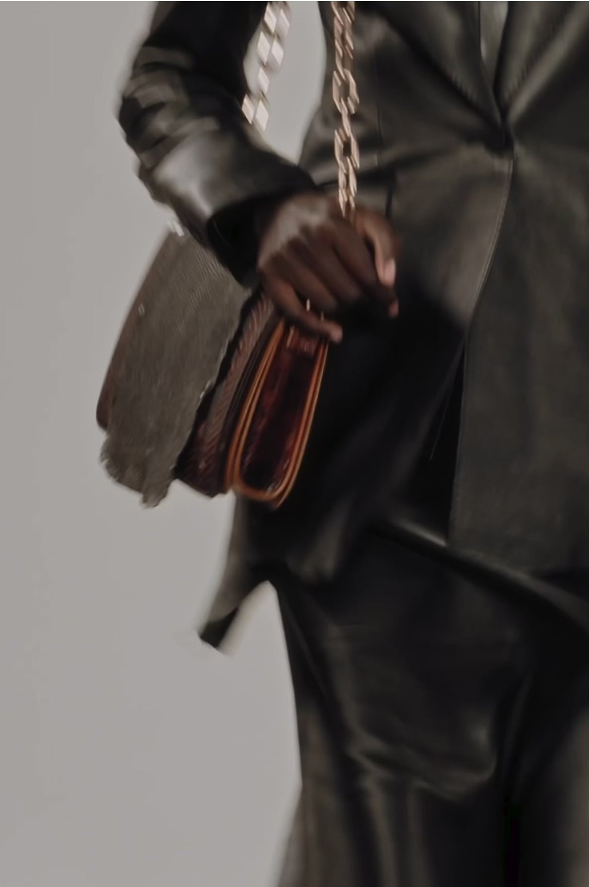 The Edwardo Skirt, crafted from lamb plongé leather, reflects Gabriela Hearst’s F/W25 collection’s core interplay of rawness and refinement. Its sculpted silhouette contours the body, while a raw-cut hem adds a deliberate, modern edge.